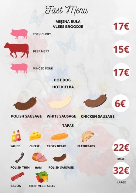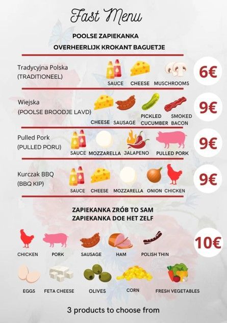 Welkom bij Red Spoon Bistro, waar we een breed scala aan heerlijke gerechten aanbieden. Ons menu biedt een variëteit aan klassieke Italiaanse gerechten, maar ook moderne, internationale gerechten. We hebben ook een speciale Poolse keuken die perfect is voor de mensen die de smaken van de Oost-Europese keuken willen ervaren.